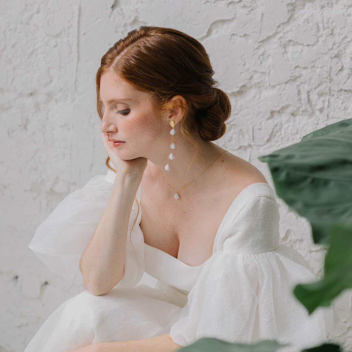 C'est un bijou plein de douceur et contemporain pour une mariée à l’allure naturelle et élégante.