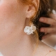 Crochets d'oreilles et fleurs en porcelaine froide.