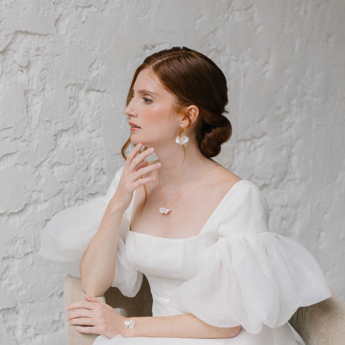 "Eleonora" Boucles d'oreilles de mariée avec fleurs en porcelaine