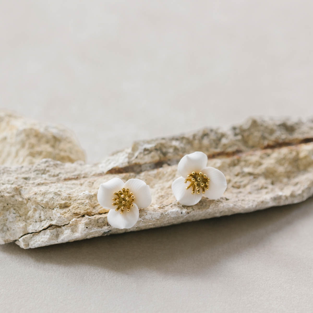 Les boucles d’oreilles "Gianna" se distinguent par leur allure raffinnée avec leurs fleurs en porcelaine blanche joliment façonnées à la main.