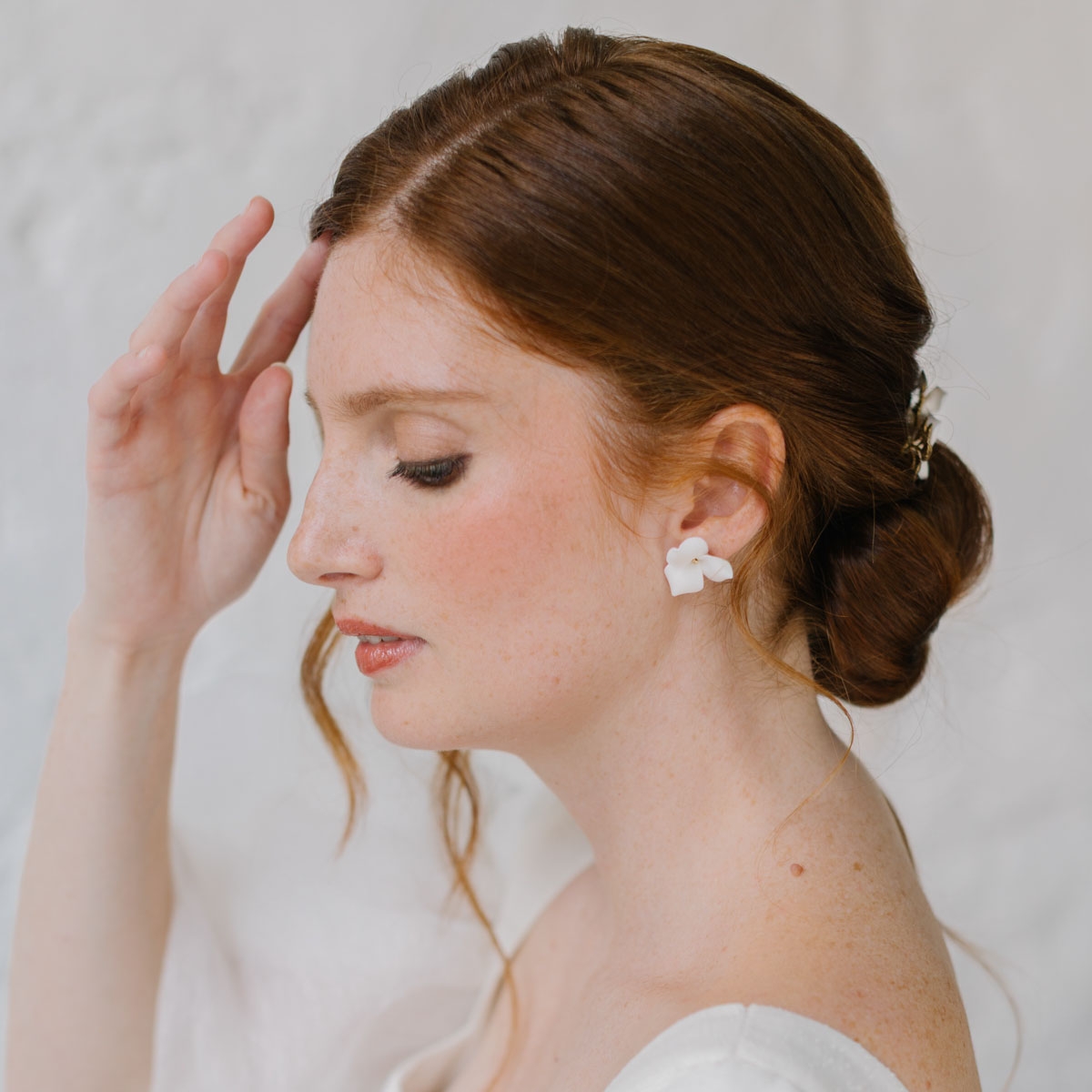 "Lina" Boucles d'oreilles de mariée avec jolie fleur en porcelaine