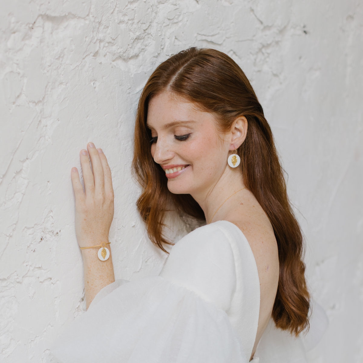 "Odetta" Boucles d'oreilles avec pendentif en céramique et feuille dorée