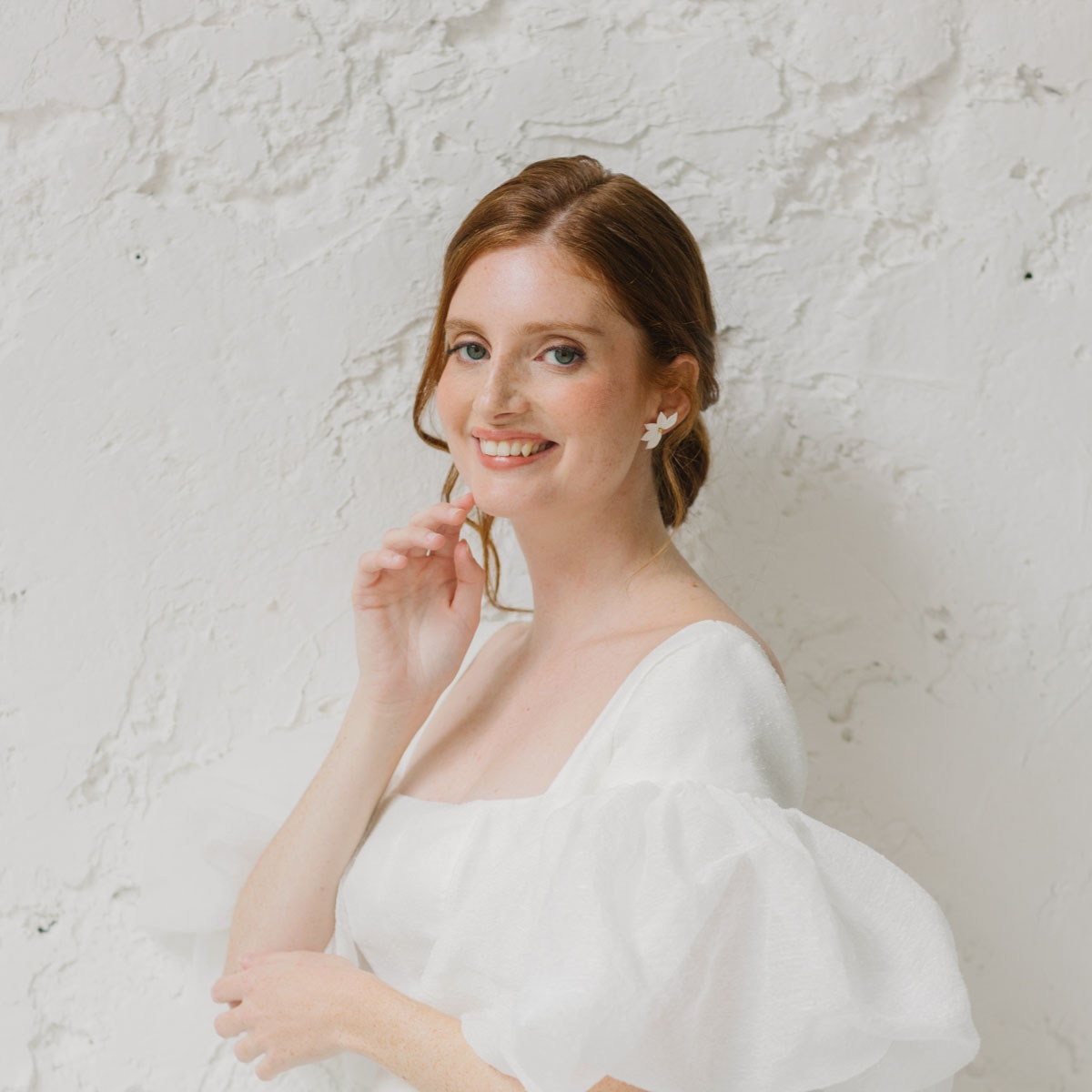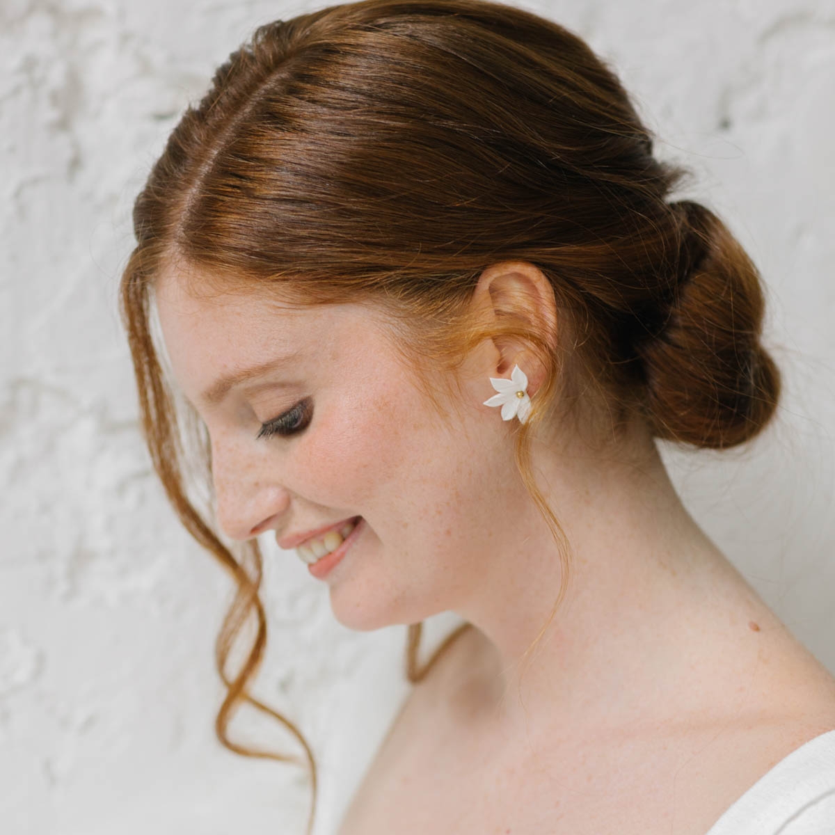 "Noelia" Boucles d'oreilles de mariée demi-fleur en porcelaine