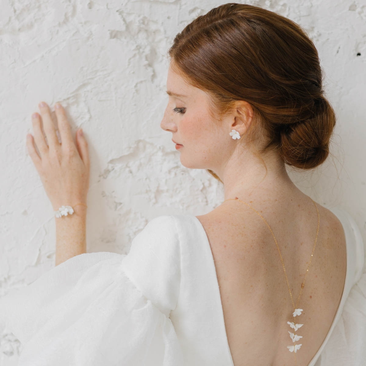 Chaque pétale est modelé avec soin pour un rendu à la fois moderne et poétique, parfait pour une mariée qui recherche un bijou artisanal au style épuré.