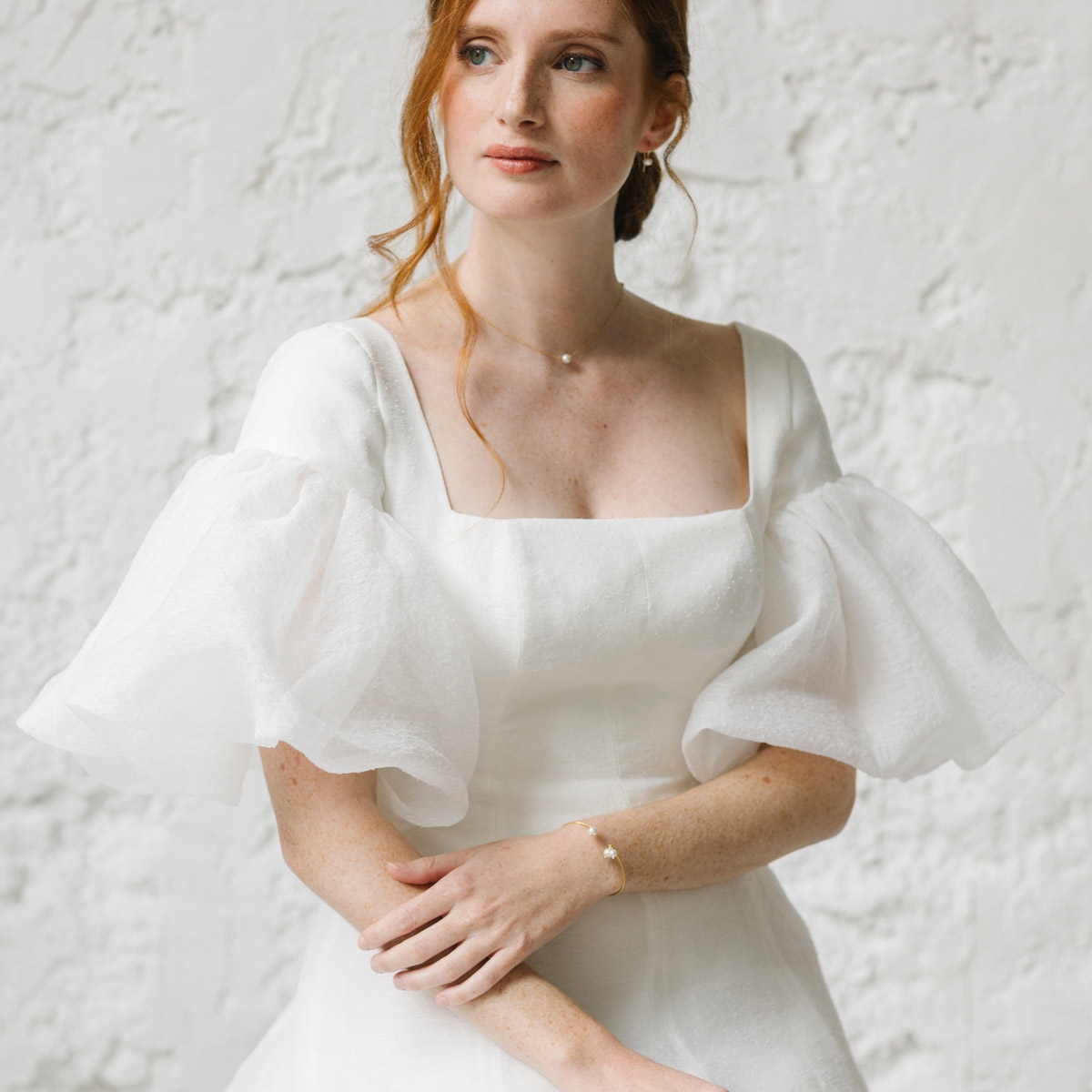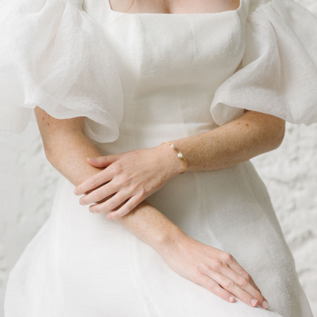 "Lucia" Bracelet de mariée jonc torsadé avec perles nacrées