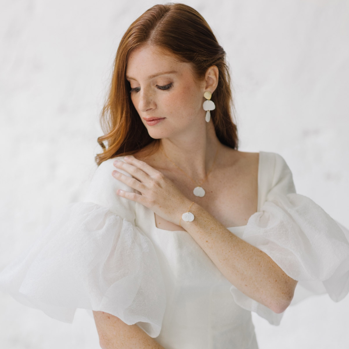 "Santina" Bracelet de mariée avec feuille d'eucalyptus en porcelaine