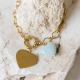 "Amour duo" Bracelet doré avec un pendentif coeur doré et un coeur en pierre naturelle