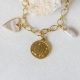 • Bracelet maille fantaisie en acier inoxydable doré à l'or 18K de 19 cm (ajustable en le fermant au maillon souhaité).