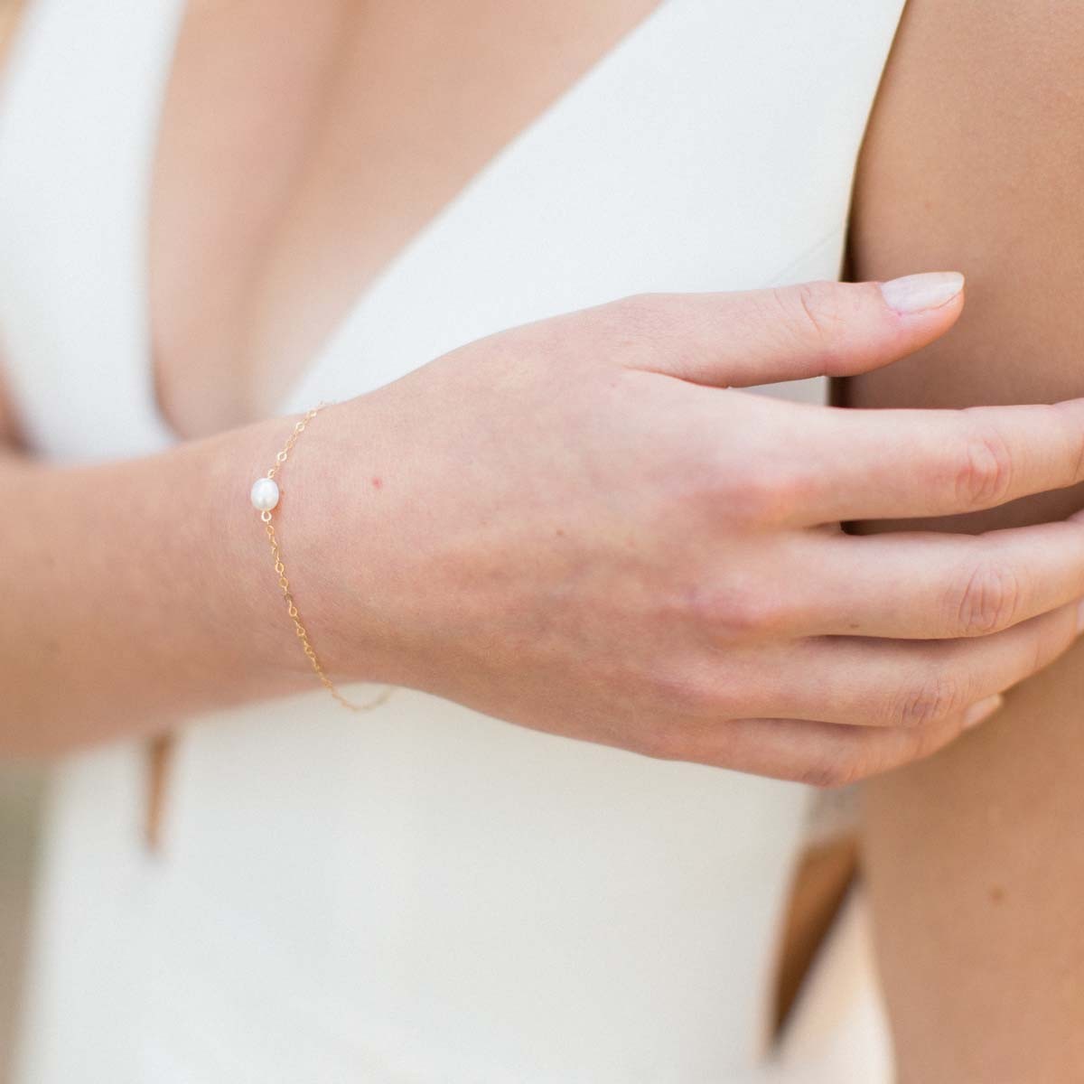 Ce bracelet est composé d'une chaîne et d'une perle d'eau douce ou nacrée au choix.
