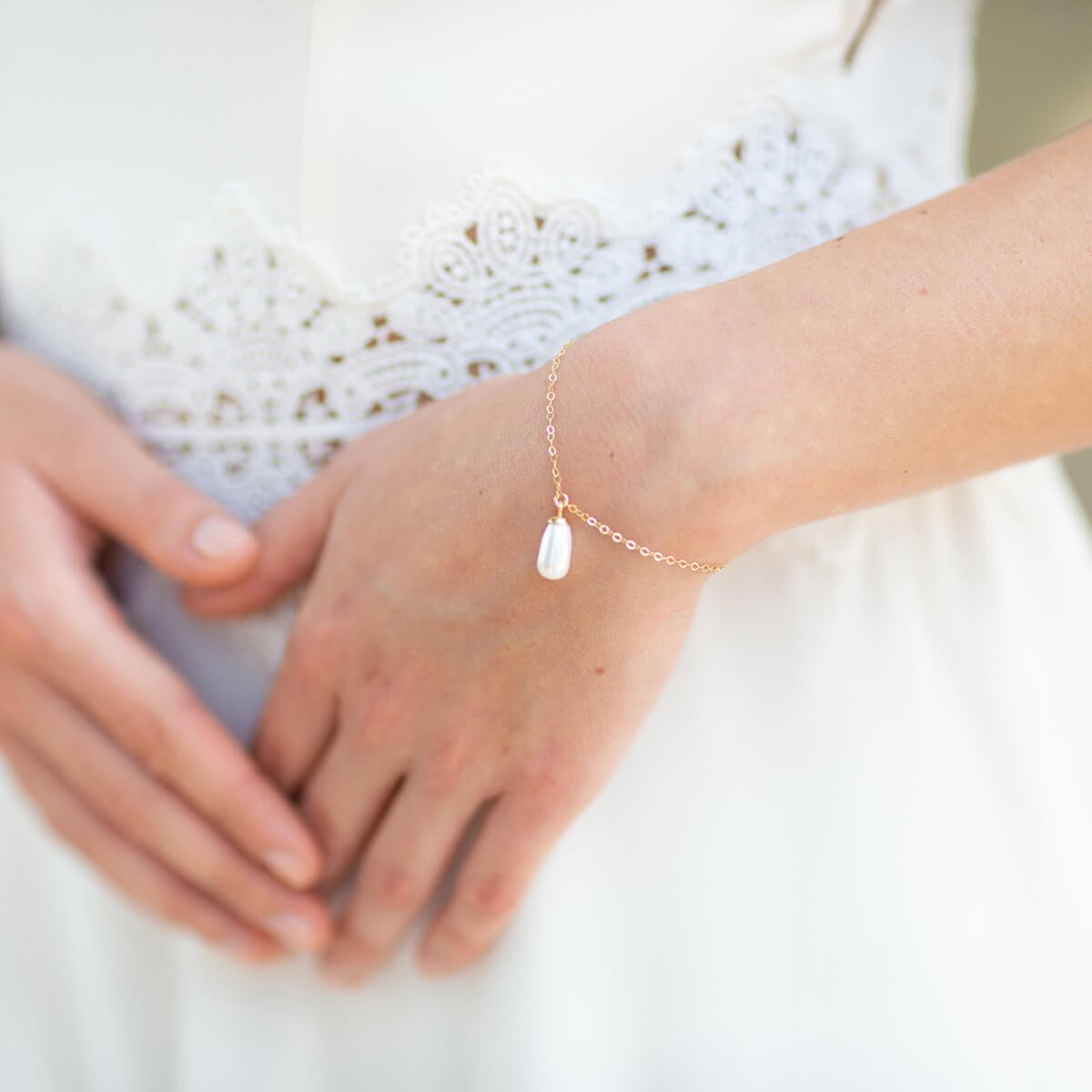 "Mia" Bracelet de mariée avec goutte nacrée pendante