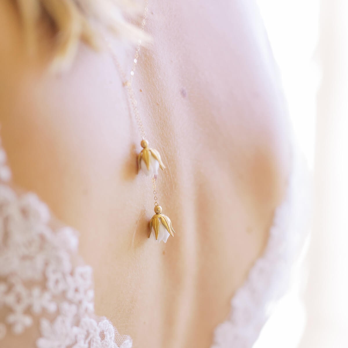 Collier composé d'une chaîne en gold filled et de fleurs en porcelaine froide.