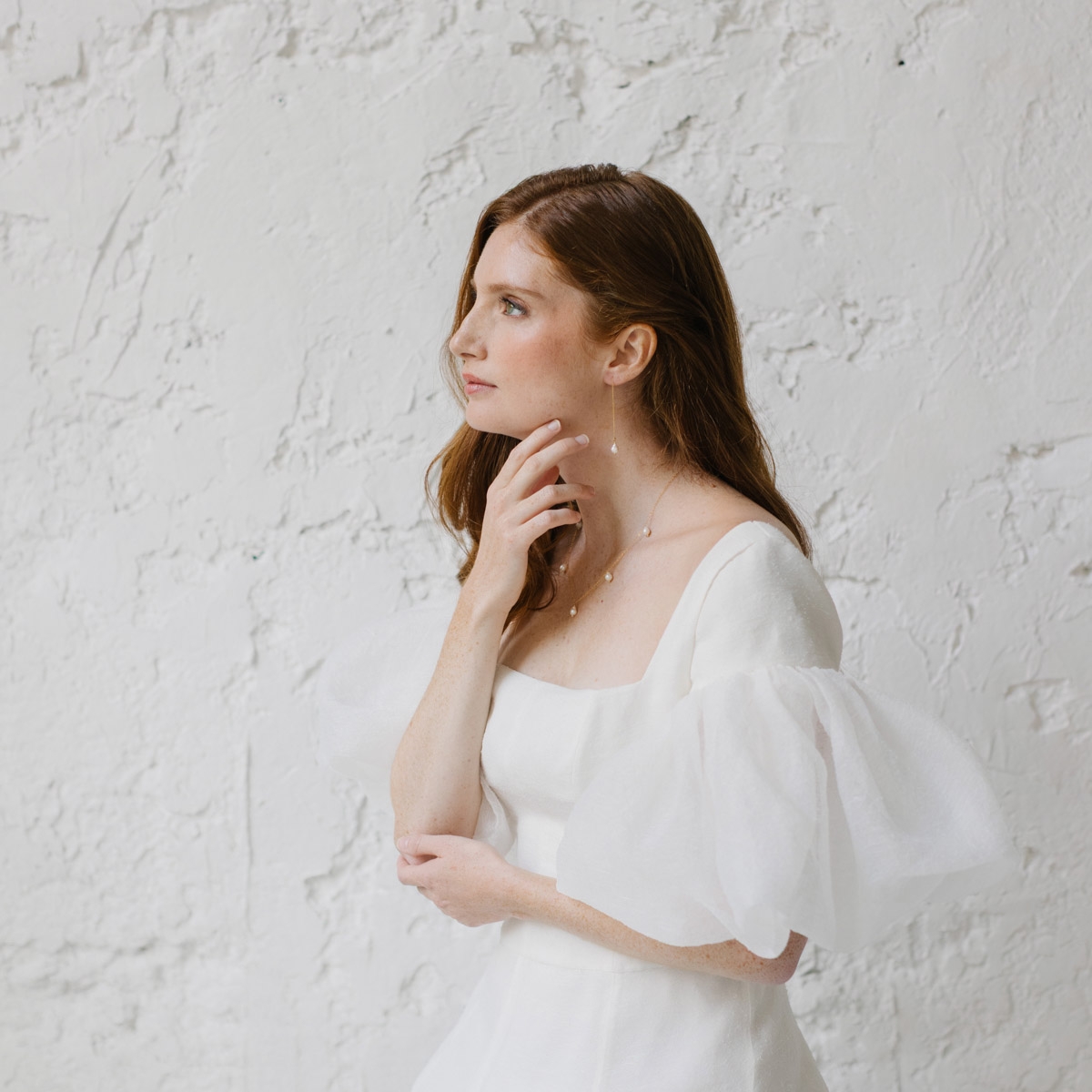 Un collier fin et lumineux, parfait pour sublimer un décolleté de mariée ou pour apporter une touche de douceur à une tenue du quotidien.