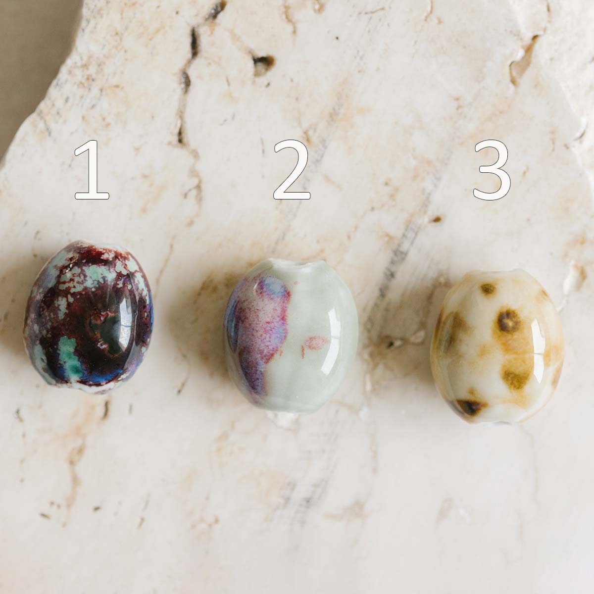 • Perle en céramique trois couleurs au choix (3 - beige marbré marron sur les photos).