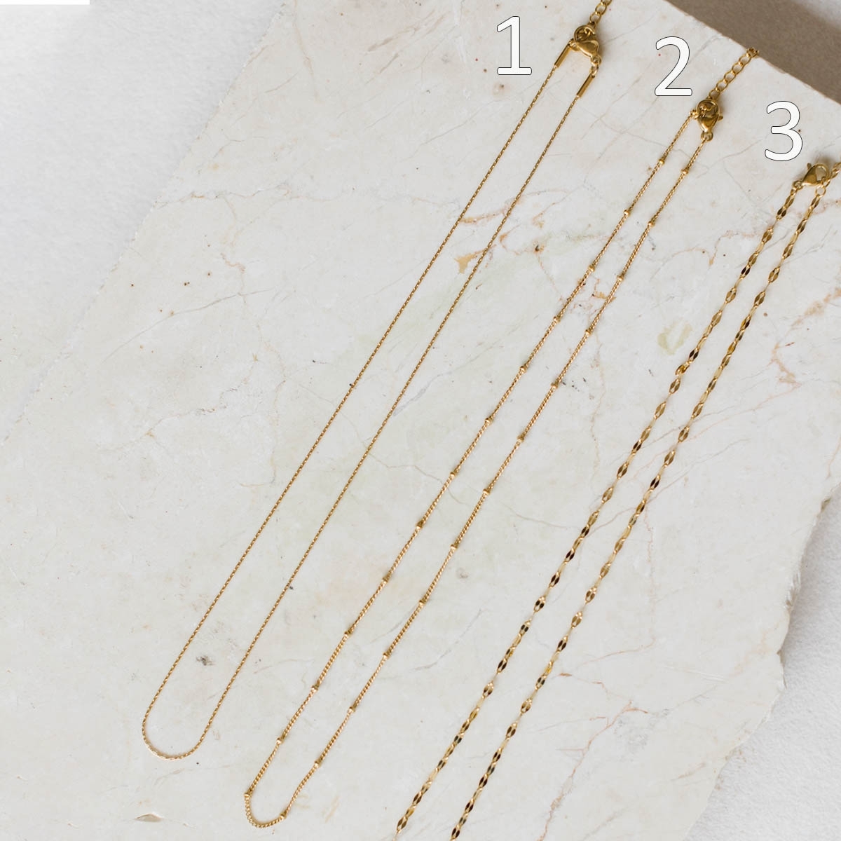 • Chaîne en acier inoxydable doré à l'or 18K de 40 cm + 5 cm (chaîne serpentine sur la photo).