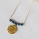 Le collier "Intuition" associe la douceur du lapis-lazuli à l’éclat doré de sa breloque personnalisable.