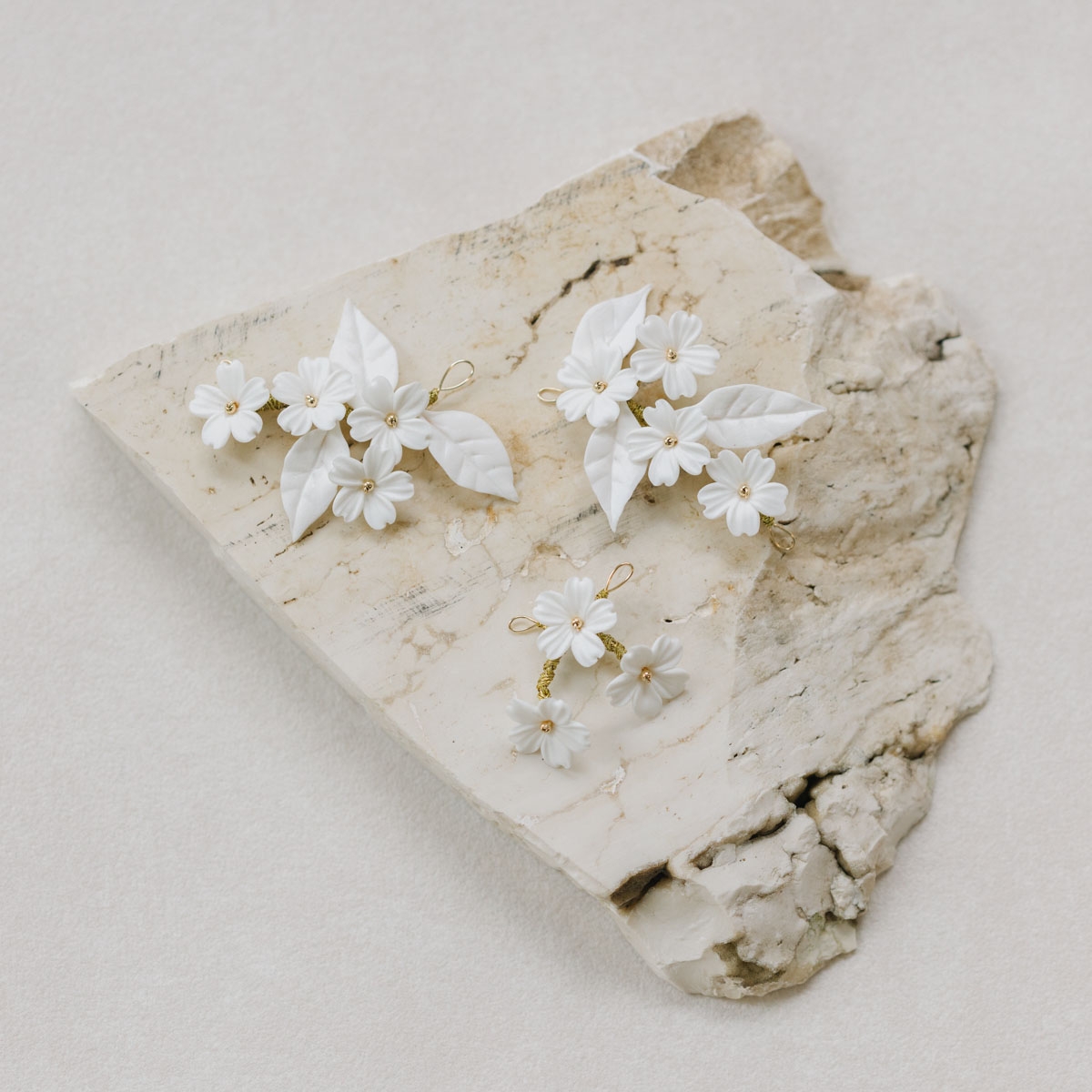 "Victoria" Ornements trio pour coiffure de mariée avec petites fleurs et feuillages en porcelaine