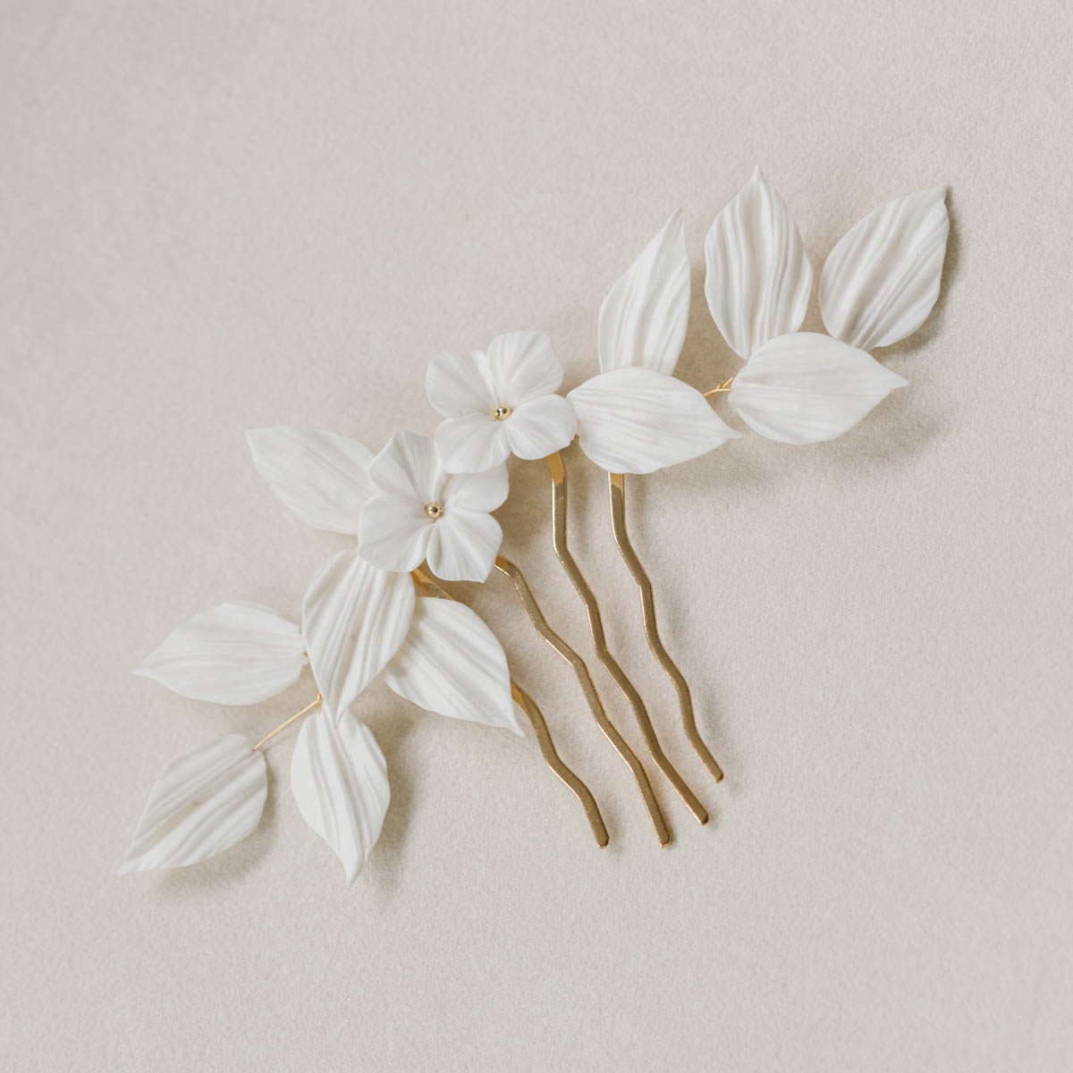 "Emilia" peigne de mariée avec feuillages et fleurs en porcelaine