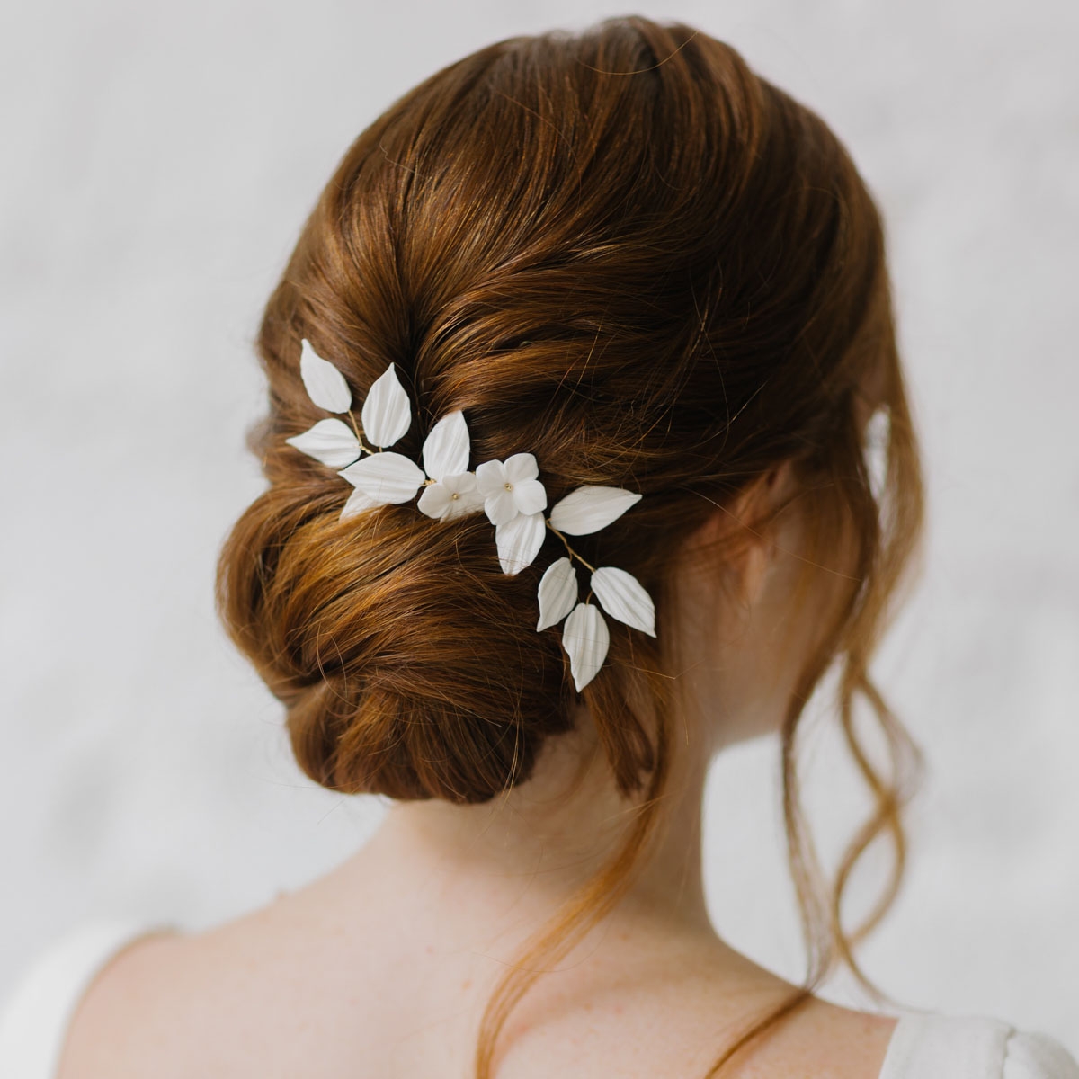 "Emilia" peigne de mariée avec feuillages et fleurs en porcelaine