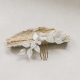 Peigne composé de délicates fleurs et de de feuilles en porcelaine.