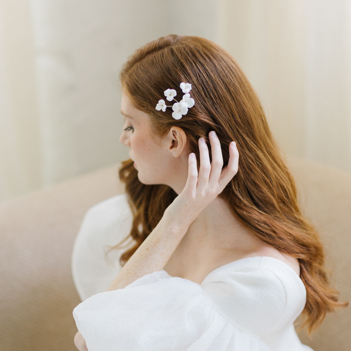 "Felicia" Peigne de mariée avec jolies fleurs blanches
