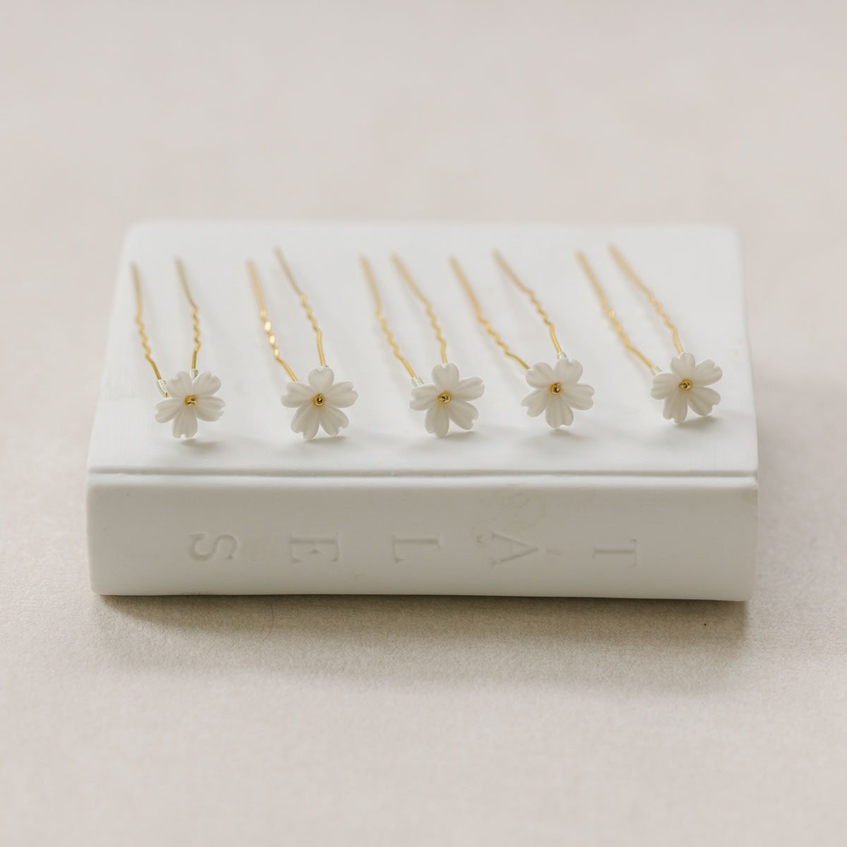 "Pia" est un ensemble de petits pics à cheveux ornés de fleurs blanches en porcelaine.