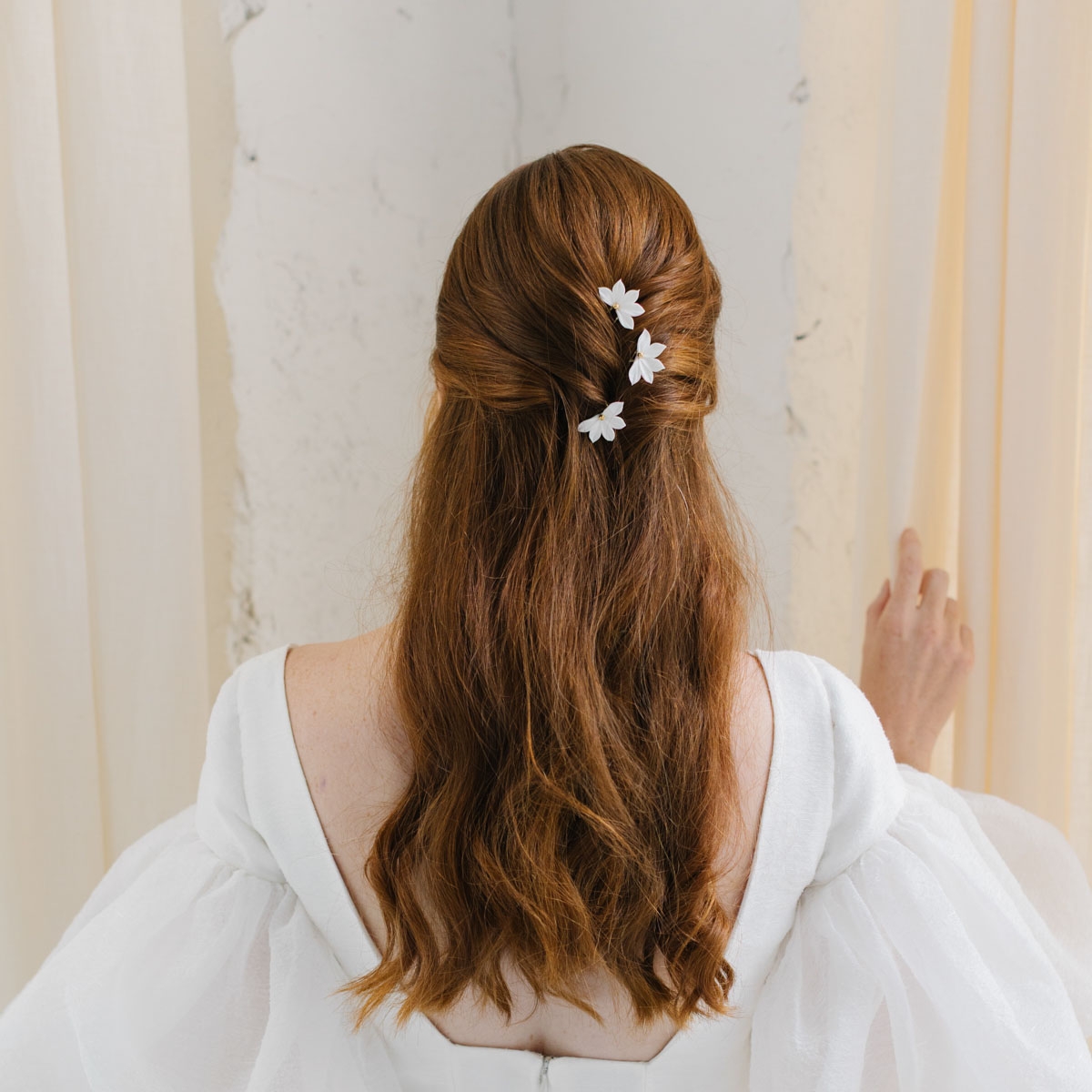"Noelia" Pics pour coiffure de mariée avec demi fleur en porcelaine